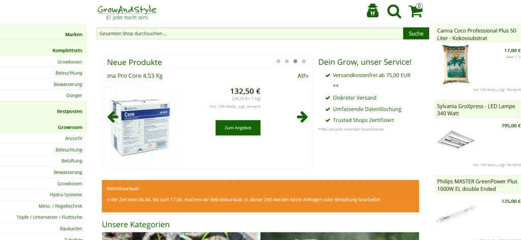 Wir hoffen, dass wir Ihr Interesse an unserem Unternehmen geweckt haben und würden uns freuen, Ihnen unsere Produkte näher vorstellen zu dürfen. Besuchen Sie gerne Growandstyle Growshop auf unserer Website. Oder schauen Sie in einem unserer Geschäfte vorbei und lassen Sie sich von unserem Sortiment inspirieren.